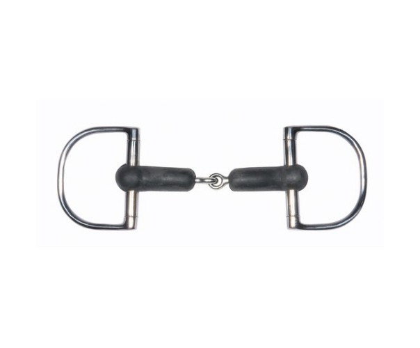 Udidlo ,,déčko" s lomeným udítkem potaženým gumou. Vhodné pro citlivé koně. Udidlové kroužky ve tvaru písmene ,,D" zlepšují laterální kontrolu.