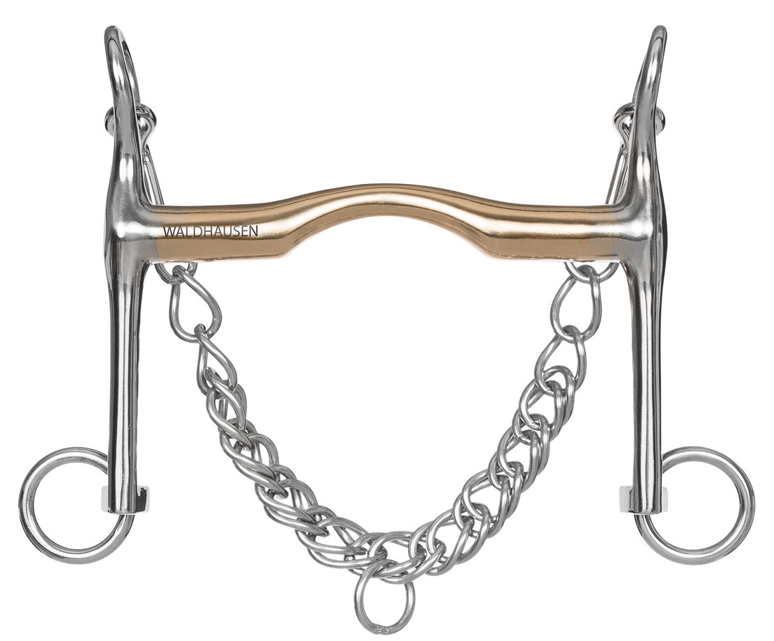 Drezurní páka Cyprium Silver se stříbrnými pevnými rameny z masivního nerezu a tloušťkou udítka 17 mm. Páka je vyrobena ze speciální slitiny kovu s mědí (až 90% mědi). Bez obsahu niklu a v antialergenním provedení. Slitina kovů - cyprium - je pro koně chuťově zajímavá, provokuje slinění a působí na aktivitu koňské huby. Udidlo je vhodné pro všechny kategorie koní, u kterých je kladen požadavek na lepší vnímání udidla. Udidla Cyprium nechladí a pro koně jsou příjemnější než nerezové. Jedná se o velmi kvalitní výrobky. Kombinace nerezových ramen a zlaté barvy Cyprium udítka je ideálním řešením pro uzdečky se stříbrným kováním.