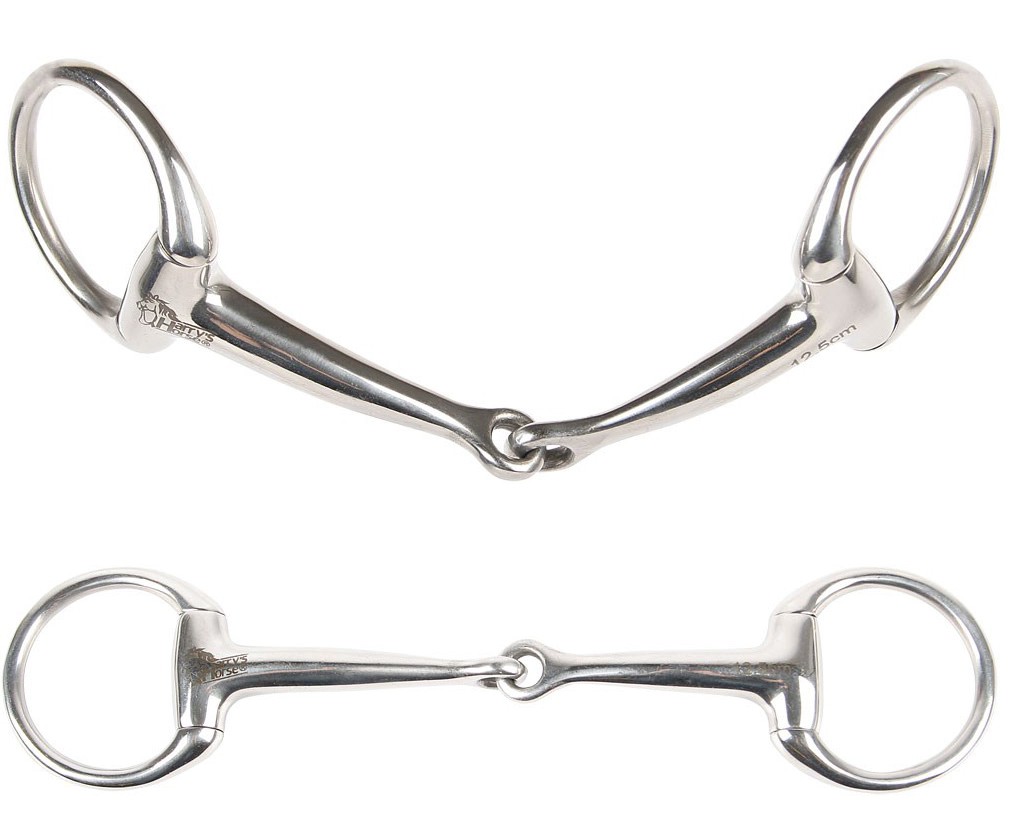 Nerezové udidlo oliva též vhodná k drezurní práci. Má tloušťku udítka 12 mm, průměr kroužků udidla je 45 mm.