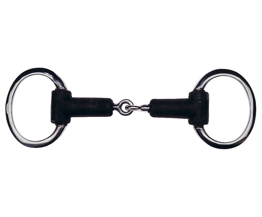 Jemná, gumou potažená oliva. Neskřípe koutky. Velké, ploché nerez udidlové kroužky. Vhodné pro citlivé koně.