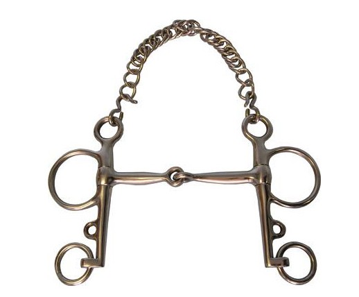 Lomené udidlo pelham s podbradním řetízkem, který slouží k podepnutí. Tloušťka udítka je 13 mm.