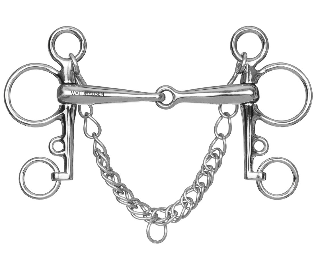 Z nerezové oceli, silné duté a lomené udidlo s tloušťkou udítka 16 mm.