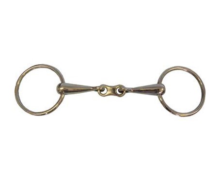 2x lomené odlehčené stihlové udidlo s plochým středem. Tento střed působí na jazyk ostřeji koně.