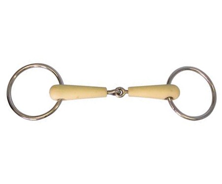 Jemné udidlo vhodné zvláště pro mladé a citlivé koně. Lomené stihlo s jemnějším udítkem potaženým plastem s jablečnou příchutí. Nerezové udidlové kroužky. Plné udítko o tloušťce 21 mm.