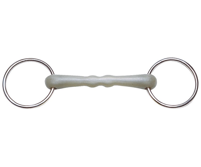 Jemné udidlo vhodné zvláště pro mladé a citlivé koně. Nelomené stihlo s jemnějším udítkem potaženým plastem s jablečnou příchutí. Anatomicky tvarovaný střed udidla. Nerezové udidlové kroužky.