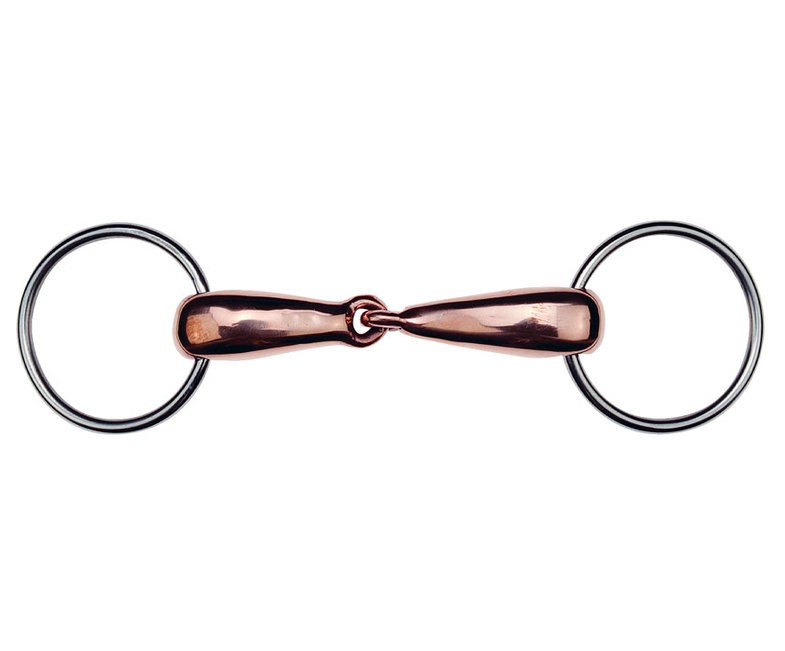 Velmi jemné lomené odlehčené udidlo s měděným udítkem. Měď podporuje slinění.
