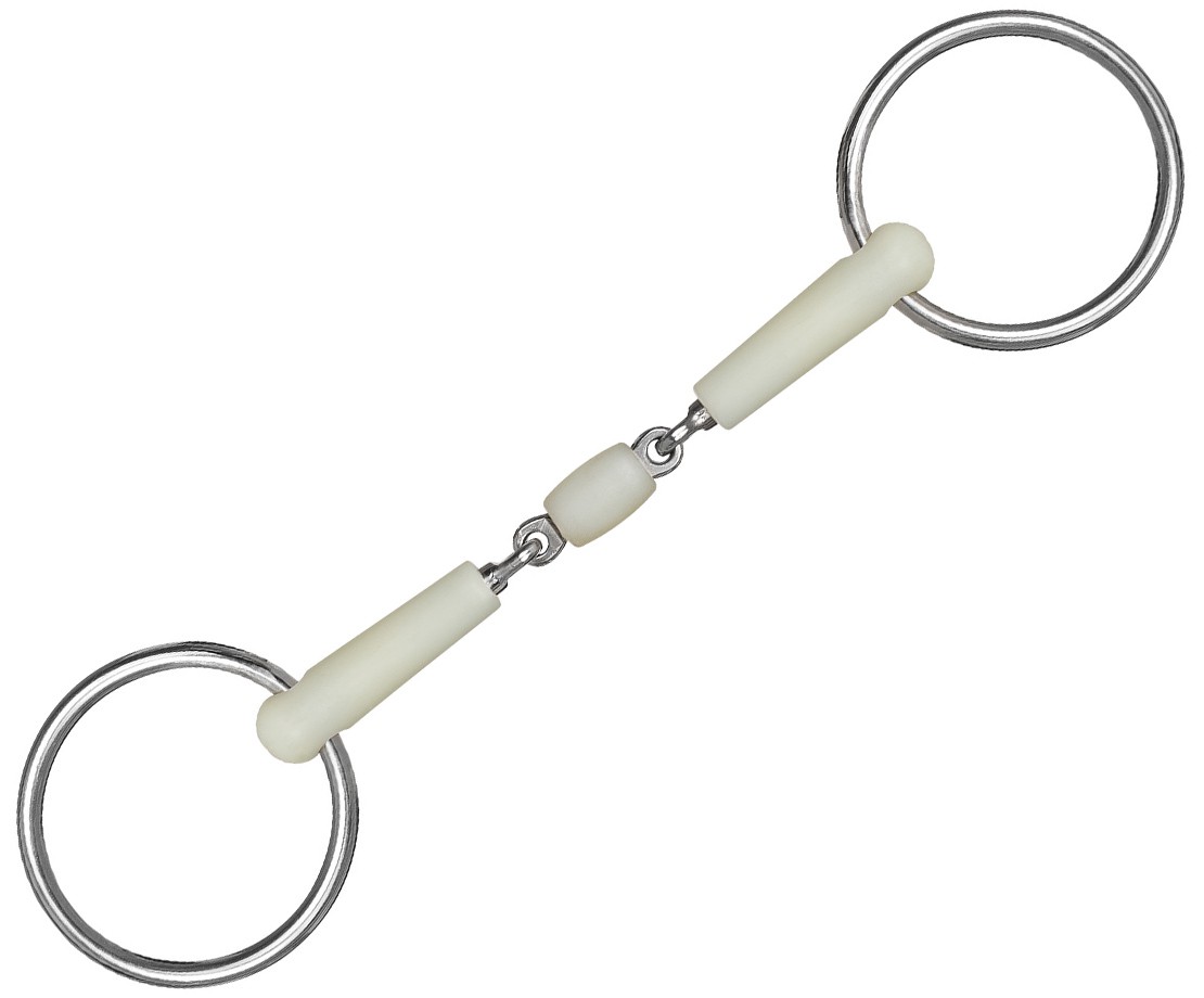 Jemné, 2 x lomené udidlo s otočným středem, vhodné zvláště pro mladé a citlivé koně. 2x lomené stihlo s jemnějším udítkem potaženým plastem s jablečnou příchutí.