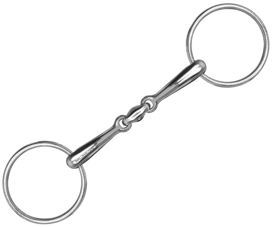 2 x lomené stihlové udidlo s peckou z nerezavějící oceli. Velmi příjemné lomené udidlo s peckou podporující slinění. Jemné udidlo za dobrou cenu, které aktivuje hubu koně.