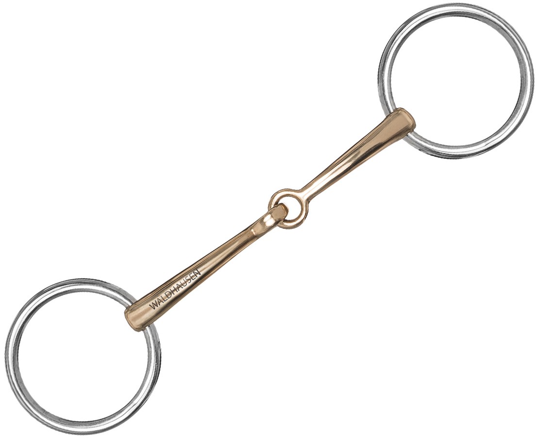 Lomené udidlo stihlo, od německého výrobce Waldhausen, se stříbrnými nerez kroužky je vyrobeno ze speciální slitiny kovu s mědí (až 90% mědi). Bez obsahu niklu a v antialergenním provedení. Slitina kovů - cyprium - je pro koně chuťově zajímavá, provokuje slinění a působí na aktivitu koňské huby. Udidlo je vhodné pro všechny kategorie koní, u kterých je kladen požadavek na lepší vnímání udidla. Udidlo má menší kroužky, lze použít jako druhé udidlo k drezurní páce.