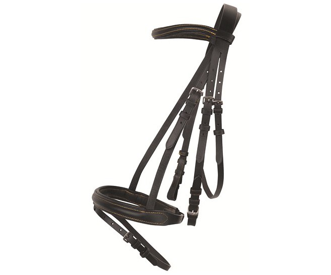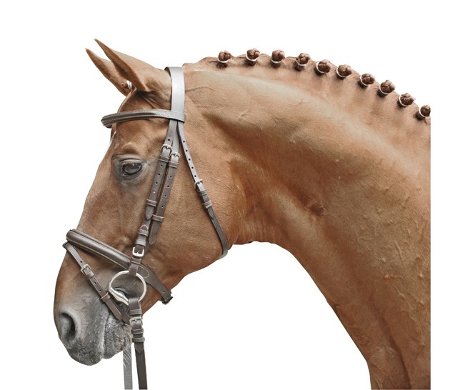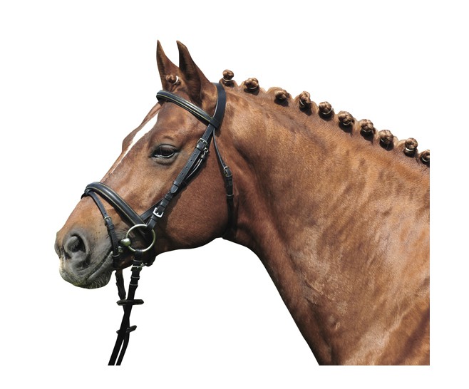 Kožená uzdečka HKM Lou s anglickám nánosníkem a ozdobným prošitím. Je vyrobena z hověziny a v obou variantách má stříbrné kování. Uzdečka je dodávána včetně plátěných otěží. Jde o levnější dovozovou uzdečku, která ovšem neztrácí na kvalitě a funkčnosti a svým poměrem cena - kvalita se řadí mezi ty první.