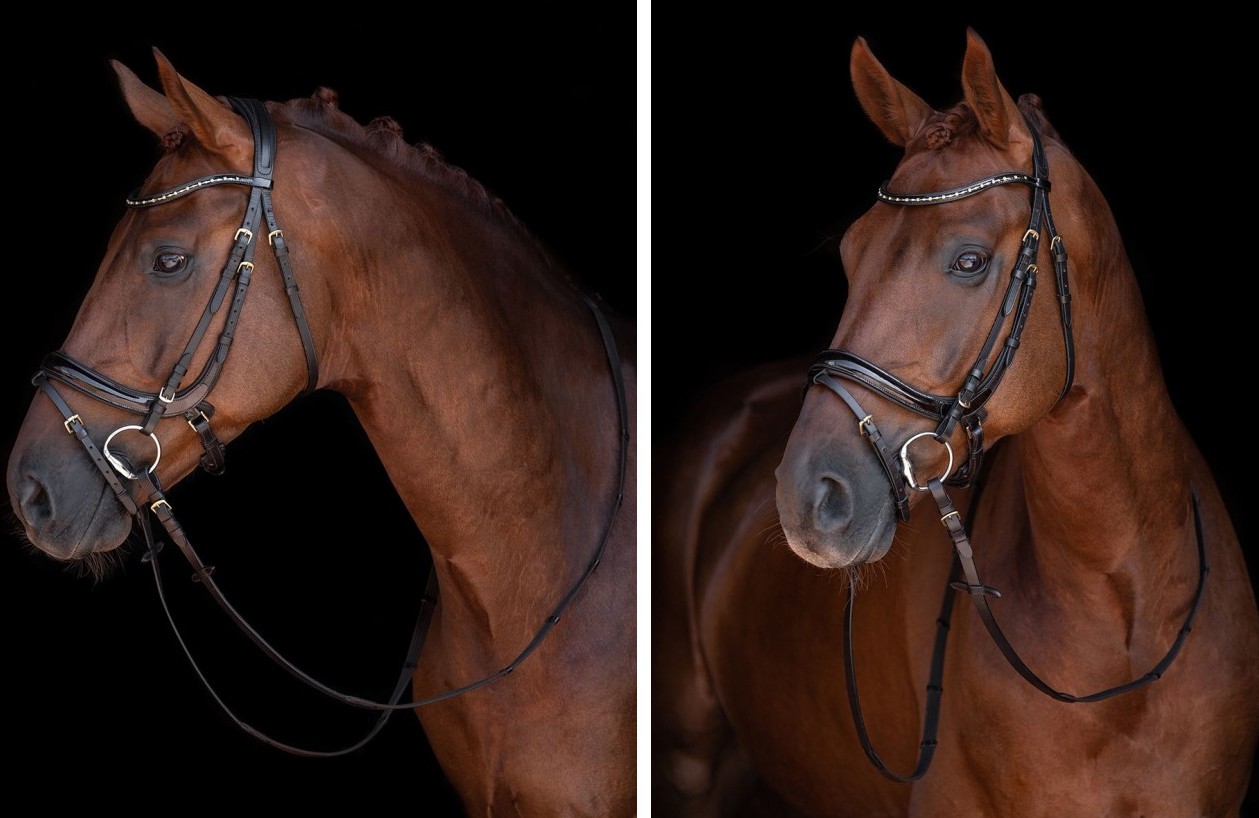 Černá uzdečka má stříbrné kování, hnědá má zlaté kování.