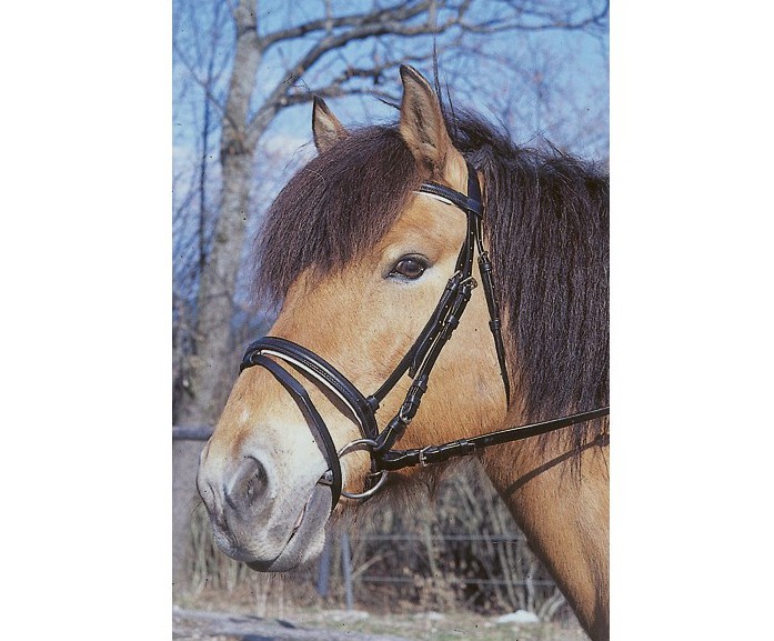 Kvalitní kožená a cenově dostupná uzdečka s anglickým kombinovaným nánosníkem a plátěnými otěžemi se zarážkami.