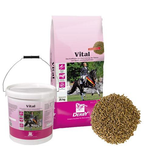 Velmi kvalitní minerální doplněk pro koně značky DERBY k optimalizaci stravy sportovních a chovných koní. Pro sportovní koně na podporu svalové hmoty, pro chovné koně na podporu plodnosti, na podporu výměny a kvality srsti, ke zhodnocení denního přídělu. Kukuřice, pivovarské kvasnice, lněné semínko a vysoký obsah vitamínů a stopových prvků zajišťují a doplňují plnohodnotně denní přísun stravy. Balení: papírový pytel 25 kg nebo kyblík 7,5 kg. Zajištuje výkon, púsobí velmi dobře na stavbu svalové hmoty, obsahuje velké množství vitamínu E. Krmné doporučení: chovné klisny a hřebci 0,5-1,2 kg, hříbata od 4 týdne 0,1-0,3 kg, zajistit dostatek pitné vody.Obsah: hrubý protein 20,5%, hrubý tuk 5,5%, hrubá vláknina 8,5%, hrubý popel 10,0%, vápník 1,8%. fosfor 0,7%, sodík 0,25%, Přísady na 1 kg: vitamín A 80 000, vitamín D3 8 000, vitamín E 500mg, měd 75mg, železo 225mg, zinek 300mg, mangan 201 mg, jod 2,6 mg, selen 1,35 mg, biotin 2 700mcg, vitamín C 1000mg, beta caroten 300 mg, vitamín B1 12 mcg, vitamín B2 24 mg, vitamín B6 20 mg, vitamín B12 120mcg, CA panthotenat 60mg, nikotinamid 120mg, kyselina listová 12mg, vitamín K3 16 mg Složení: kukuřice, melasa z řepných řízků, pivovarské kvasnice, pšeničné otruby, výtažky sojy, lněné výtažky, třtinová melasa, extrudované lněné semínko, ječmen, slunečnicový olej, chlorid sodný, Stravitelná energie: 12,40MJ, nahraditelná energie: 10,34MJ
