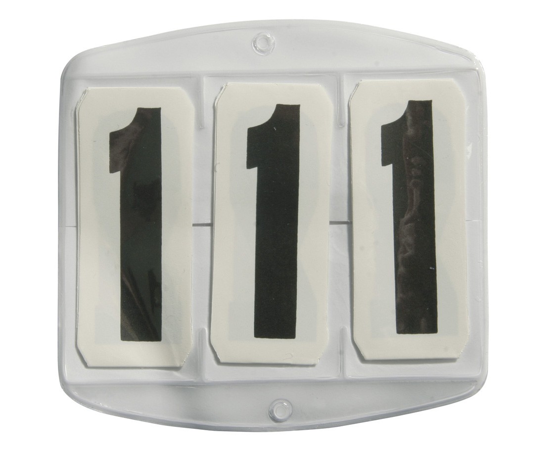 Startovací čísla připevňující se na uzdu nebo podsedlovou dečku. Součástí balení jsou 3 pásy čísel od 0-9.