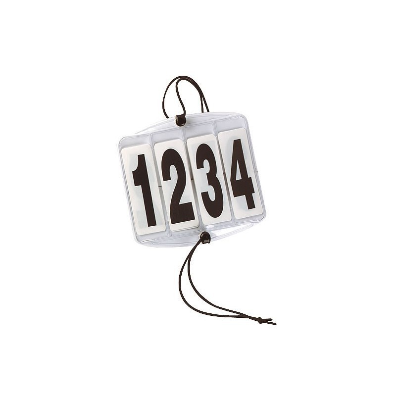 Startovní 4-místné číslo pro jezdce vyrobené z P.V.C. obdélníkového tvaru o rozměrech 9,5 x 7,5 cm. Uchycení pomocí gumiček a háčků.