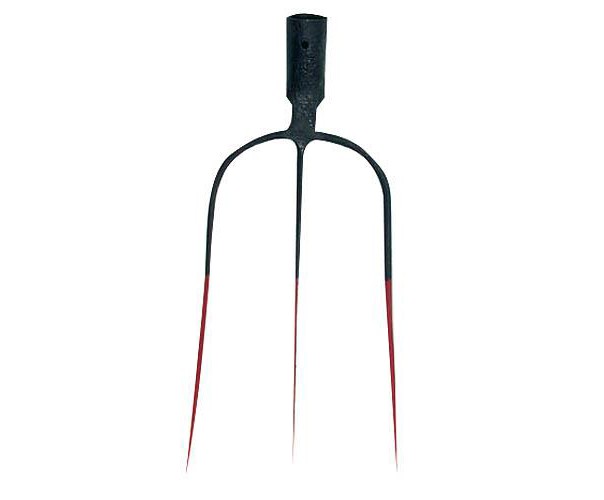 Vidle se třemi hroty. Vidle jsou určeny na práci se senem.