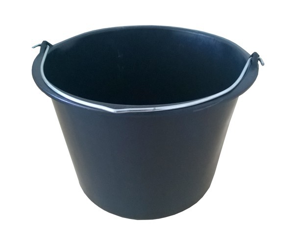 Černé plastové vědro o objemu 5 litrů vyrobené z PP. Vhodné např. na přípravu krmení.