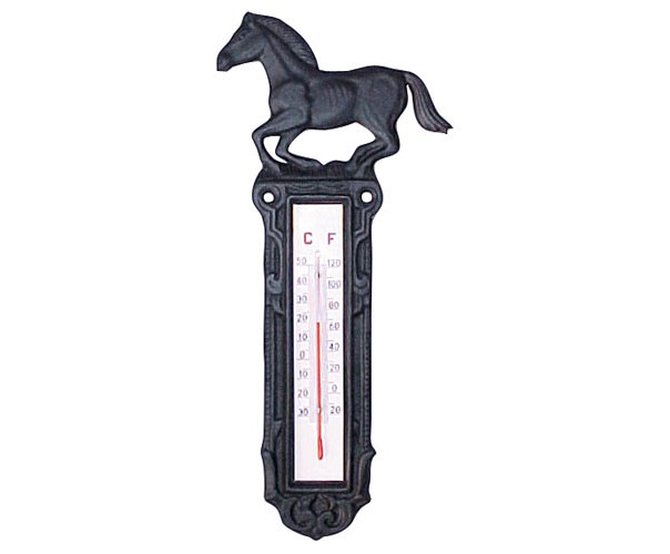 Litinový teploměr s koníkem.