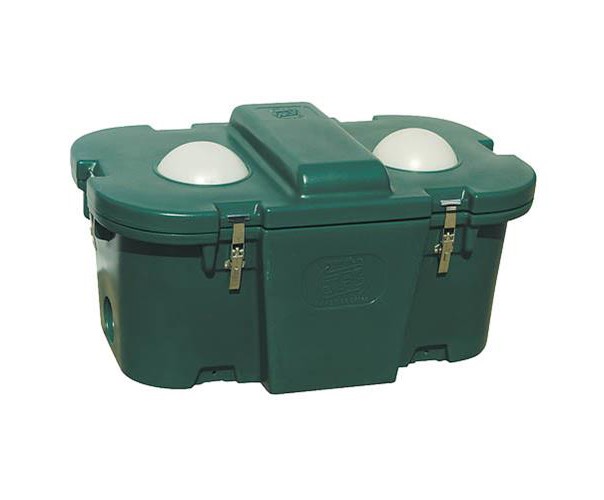Dvojitá míčová napáječka se třmeny a dvojitou stěnou vyplněnou izolací k napájení koní nebo skotu v zimním období. Pro správný provoz je nutný dostatečný počet zvířat a přívodní potrubí vedené v dostatečné hloubce tak, aby voda přitékající do napáječky nebyla podchlazená. Míčová napáječka z polyetylenu, izolovaná polyuretanovou pěnou. Vypouštěcí otvor pro snadné čištění. Přívod vody zespoda. Nerezovýmé třmeny pro rychlé otevření.
