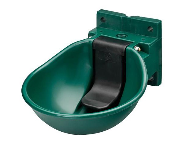 Plastová napáječka pro koně s pojistkou. Plastová napáječka pro koně s pojistkou na zastavení průtoku (pojistkou se zajistí jazyk napáječky).