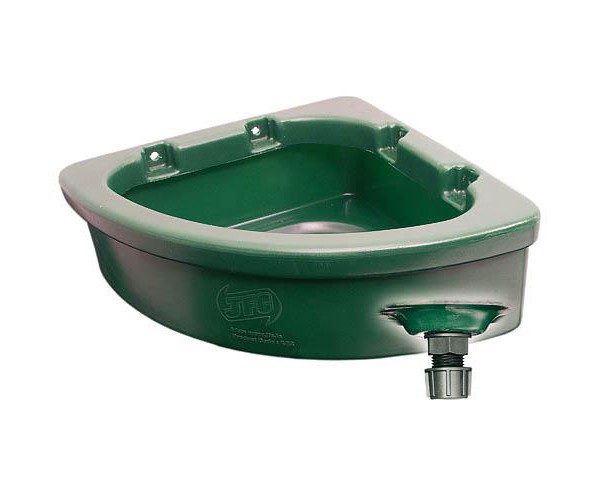Velmi kvalitní plastový rohový žlab s hranou a vypouštěcím ventilem k přišroubování na stěnu. Na spodní straně žlabu je vypouštěcí otvor se zátkou a závitem, díky kterému je možné žlab pohodlně vyčistit. Hrana zabraňuje vyhazování krmiva.