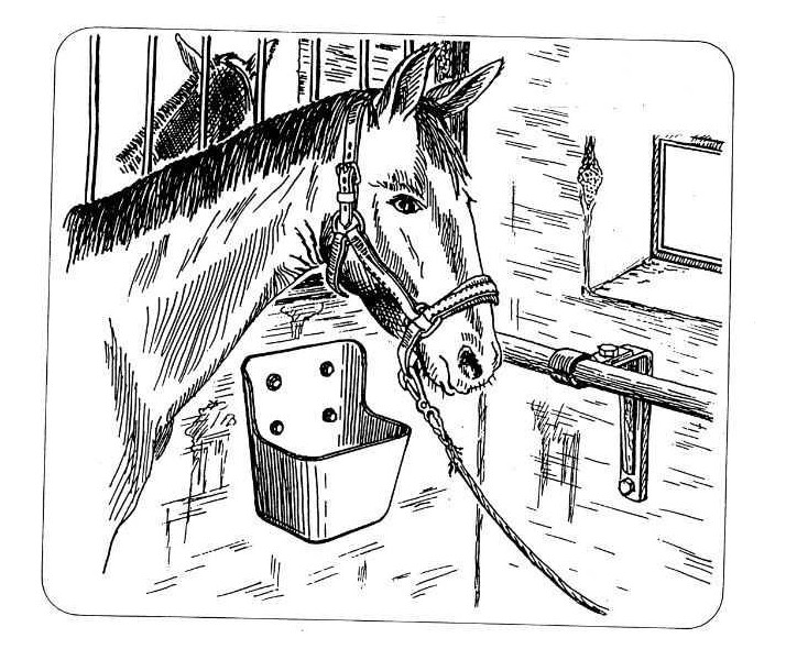 Žlab se dodává v zelené barvě a používá se jako pevně montovaný pro krmení koní.