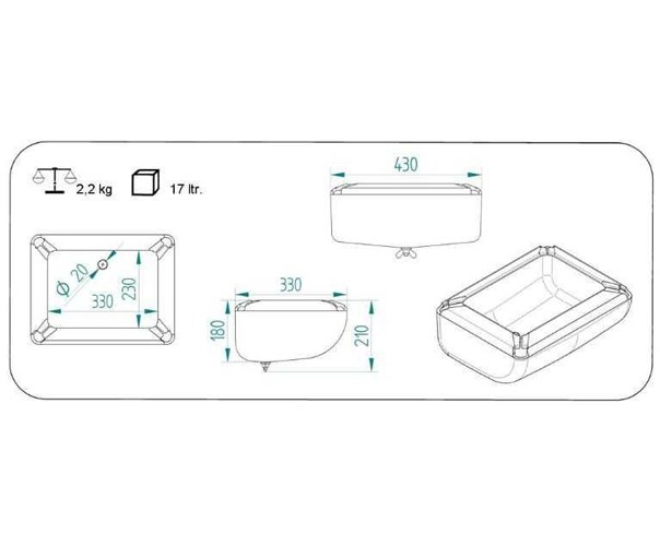 Žlab přímý s výpustním šroubem OK PLAST 17 l