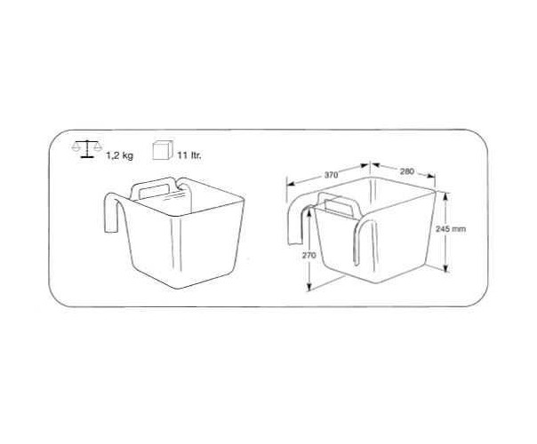 Závěsný žlab OK PLAST 11 ltr. je vyroben pro krmení a napájení koní v boxech, které mají svislé příčky. Má 2 závěsné háky a úchyt pro manipulaci. Je vhodný do přepravních vozíků a pro krmení i napájení při závodech apod.