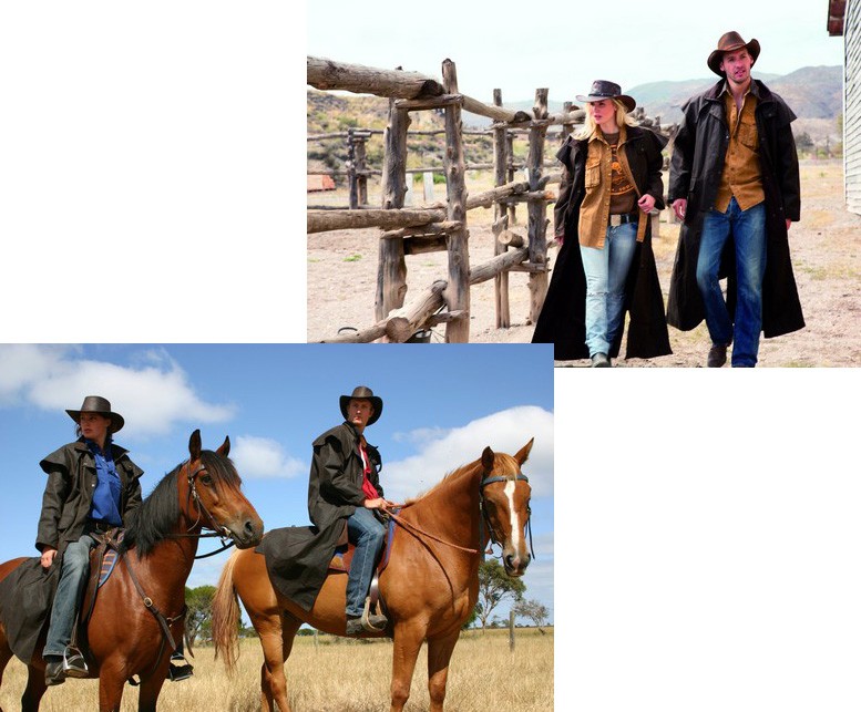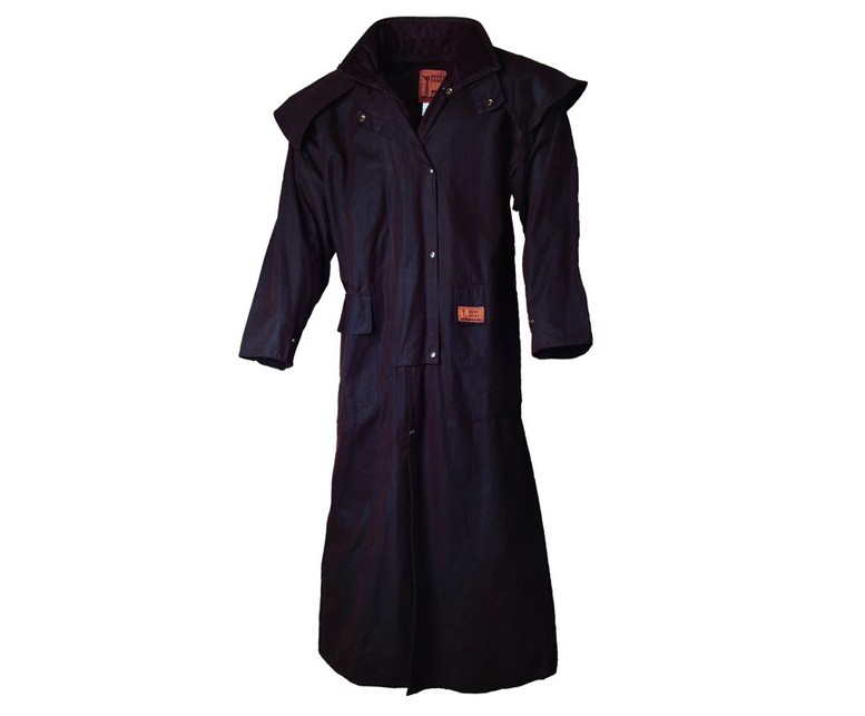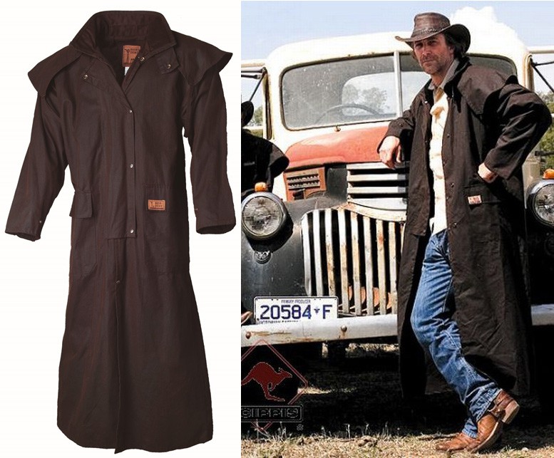 Dlouhý westernový australský kabát s pevně přišitou pelerinou, který Vás ochrání před nepříznivým počasím, vhodný pro muže i ženy. Má dvě přední kapsy, jednu vnitřní, zadní rozparek, lýtkové přezky. Konce rukávů lze stáhnout pomocí druku.