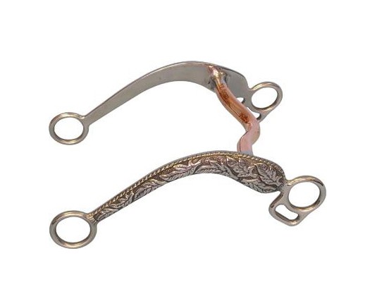 Westernové pákové nerezové udidlo s oválnými, bohatě zdobenými pevnými rameny. Vyklenuté, mědí potažené udítko poskytuje prostor pro jazyk a zároveň zvyšuje ostrost udidla. Měď podporuje slinění. Délka ramen od udítka je 16 cm.