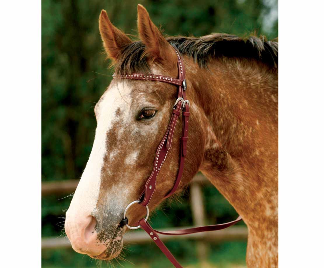 Westernová uzdečka zdobená stříbrem. Uzdečka se dá upravit po obou stranách. Uzdečka má zdobené lícnice, čelenku a také nátylník.
