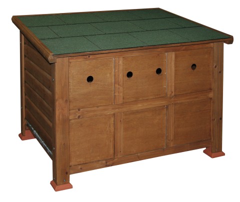 Dřevěný kurník pro kachny a husy z borového dřeva. Dřevo ošetřeno ochranným nátěrem. Bitumenová krytina. Pozinkovaná vana pro snadné čištění podestýlky. Oplastované nohy. Větrací otvory. Dodáváno rozložené v kartonu. Velice snadná montáž.