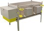 Kovová bateriová klec s drátěným pletivem a plastovým roštem pro chov králíků. Vlastní klec je umístěna ve výšce cca 40cm, světlost klece je pak cca 50cm, její šířka je 99cm a hloubka cca 55cm. Pod roštem je záchytný pozinkovaný plech na výkaly a na obou bocích jsou úchyty s uzávěry pro přichycení doupat pro králíčata. V dodávce klece 2 2-dílná krmítka na směsi a 2 závěsné napáječky na PET lahev; doupata nejsou součástí dodávky. Konstrukce klece umožňuje stavět 2-3 klece do baterie na sebe.