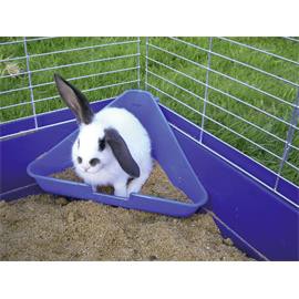 Záchodek pro králíky určený do klece či výběhu. Králík je čistotné zvíře a lze ho naučit na záchodek a díky tomu ušetřit za celkovou údržbu klece.