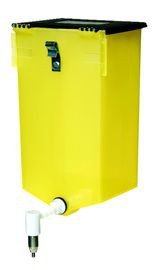 Závěsná plastová napáječka s niplovým ventilem pro chov králíku; příchytí se vně dvířek kotce pomocí plechového klipu a dodává se podle obsahu ve 2 velikostech. Plastové vývodní kolínko je umístěno v nejnižším bodě dna tak, aby se plně využil obsah nádobky. Šířka napáječky - 10,5 cm, výška napáječky dle objemu - 500 ml 11,5 cm po stranách, 13 cm v nejnižším bodu u niplu, 1000 ml - 16 cm po stranách, 18 cm v nejnižším bodu u niplu.