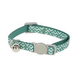 Nylonový obojek pro kočky v tyrkysové barvě s rolničnou a bezpečnostní sponou. Obojek je stavitelní do maximální délky 30 cm a šíře nylonu je 1 cm.