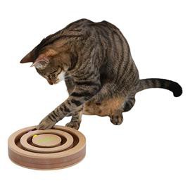Výuková a zábavná pomůcka neboli hlavolam - hračka pro psy a kočky vyrobená ze dřeva. Lze ji použít z obou stran. Na jedné straně je posuvná deska a z druhé strany jsou drážky s kuličkami. Vyrobené z MDF desky.