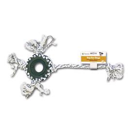 Přetahovadlo pro psy středních a větších plemen ve tvaru pneumatiky s bavlněnými provazy.