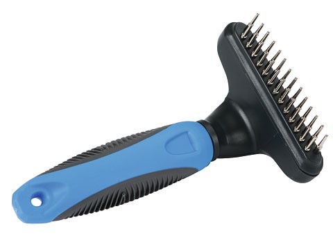 Osvědčený dvouřadý hřeben v novém designu. Gumová vsadka v rukojeti zpříjemňuje držení. Pro intenzivní péči o srst. Rozměry:15x9cm. Délka jehlic 19mm a 14mm.