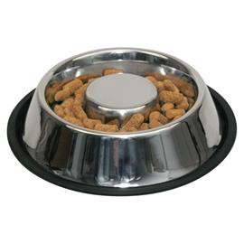 Speciálně tvarovaná miska v nerezovém provedení, která zabraňuje hltání potravy a vody.