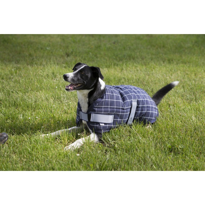 Robustní zateplená deka pro psy v károvaném designu pro chladné dny roku.