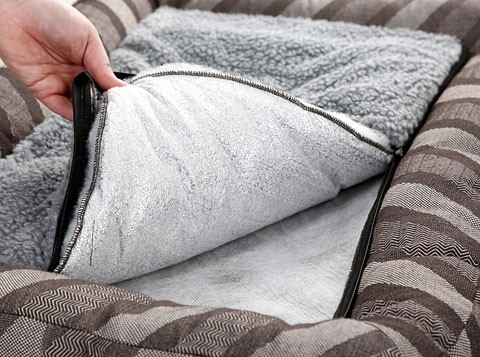 - samoohřívací plocha lehátka - nepropouští tělesné teplo psa a zpět odráží chlad od podlahy