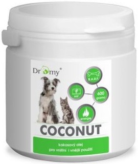 Kokosový olej pro psy a kočky, určený jako zdroj energie i pro udržení kvality srsti, pokožky a drápů.