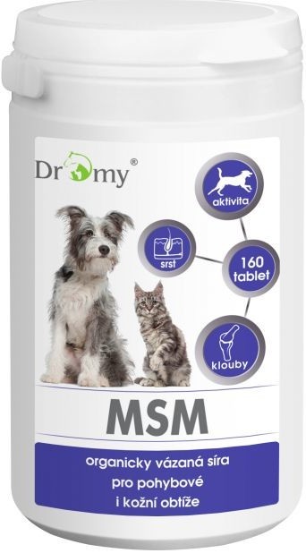 Klinické studie informují o pozitivním vlivu MSM především na artrózu, luxaci patelly, dysplazi kloubů, výrazné zlepšení pohyblivosti u starších psů,