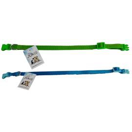 Barevný obojek vyrobený z kvalitního nylonu s plastovou sponou a kovovým očkem pro uchycení vodítka.