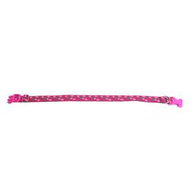 Stylový růžový obojek vyrobený z kvalitnáho nylonu, plastovou růžovou sponou a kovovým očkem pro uchycení vodítka.
