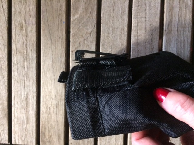 Taštička na pamlsky k zapnutí na opasek nebo rajtky. Taštička má klip klap uzávěr, díky němu je otevírání a zavírání jednoduché a žádné pamlsky z ní nevypadnou. Taštička se zapíná pomocí poutek na suché zipy nebo pomocí připenevněného klipu, stačí nasunout na pás rajtek.