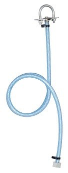 Plastová hadice o délce 180cm pro výškově stavitelné nástavce se používá k instalaci napájení pro prasata, která má přípojnou klemu na 3/4" potrubí s uzávíracím šoupětem a koncovou přípojnou matici s vnitřním 1/2" závitem; klema se připojí na vodovodní potrubí do předem vyvrtáné dirky o průměru 6mm.