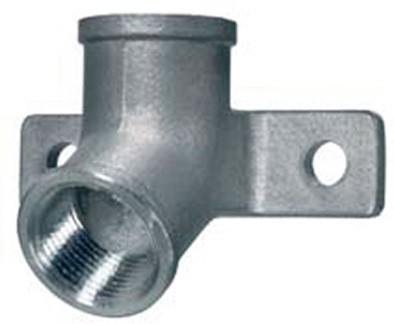 Nerezový nástavec s úhlem 45° se používá jako přípojný držák 1/2" napájecích niplů pro prasata.
