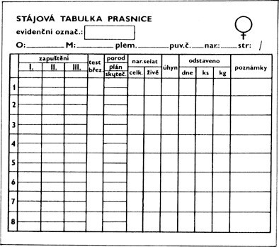 Bílá plastová tabulka pro prasnice o rozměru 21x19cm k vedení prvotní evidence ve stáji; k popisování se používají lihové popisovače.